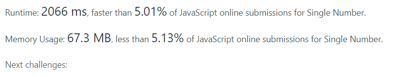 for(let i = 0; i < nums.length; i++){ prevArr = nums.slice(0, i); nextArr = nums.slice(i+1, nums.length); if(!prevArr.concat(nextArr).includes(nums[i])) return nums[i]; }โ